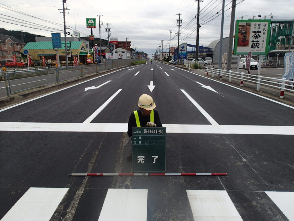 | 工事概要: | 【道路改良】 盛土工(路体(築堤)盛土20m3、歩道盛土10m3、路床盛土90m3) 排水構造物工(側溝300用CO蓋427枚、グレーチング蓋48枚) 【舗 装】 車道舗装(下層路盤4,060m2、上層路盤(再生瀝青安定処理)4,010m2、基層3,980m2、表層(改質FIe型)3,970m2) 歩道舗装(下層路盤1,650m2、表層1,650m2) 路肩舗装(上層路盤395m2、表層(FIe型)478m2) 縁石工 (街渠工(A~D)15.2m、舗装止工2.9m) 踏掛版工 1式 |